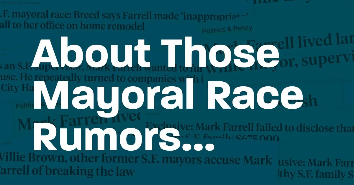 Answer: No one actually knows. But Breed’s claim doesn’t add up. Current Mayor London Breed called the San Francisco Standard to start a rumor that in a phone call—the date and time of which has conveniently slipped her mind—Mark Farrell pressured her into expediting a permit for the construction he wanted to do on his home. She doubled down that the call happened sometime in 2019 but Mark purchased his home in 2020, so this does not add up.