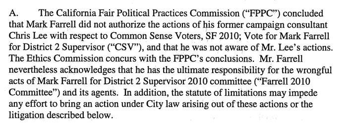 In the end, the FPPC found that Farrell didn’t authorize his consultant to coordinate with the IE, and despite what it says on Lurie’s attack mailers, as legal fees were mounting, Farrell ultimately paid $25,000 to settle—not $191,000. His consultant was also fined separately.