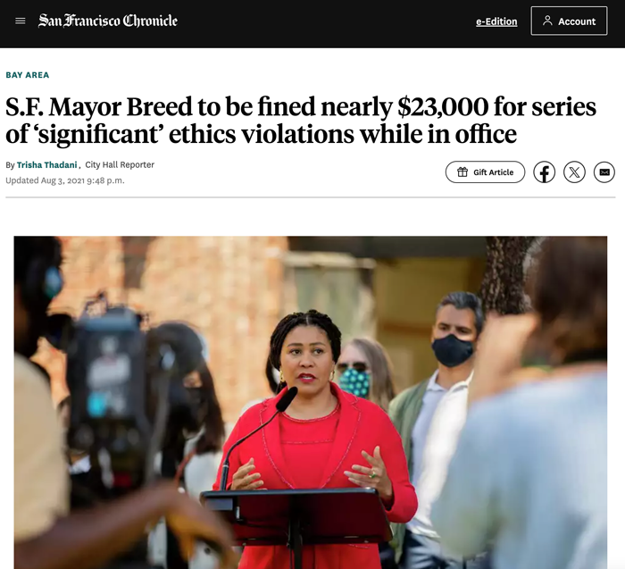 This might sound bad, but it happens frequently—like when Breed had to pay $22,792 to settle similar campaign finance allegations.